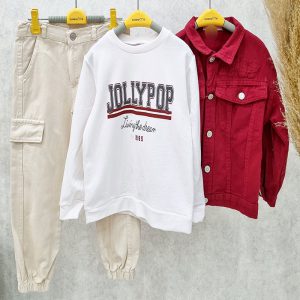 سایز 3 :قد تیشرت 39 قد سویشرت 37 پهنای سویشرت 33 آستین از یقه 39 قد شلوار 51